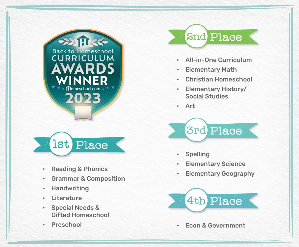 Hundreds of thousands of families use the curriculum today, and the subjects offered have expanded to include math, science, history, handwriting, electives, reading books, and more!