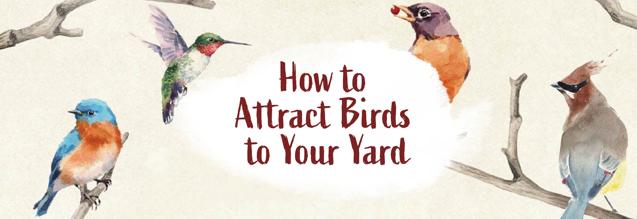 Use the tips below to help birds feel right at home in your backyard. Once you learn how to attract birds, download our free printable poster, Birds of North America. It features 26 beautiful watercolor illustrations of common birds such as the blue jay, great blue heron, mourning dove, and American robin, and it includes a fun family activity!