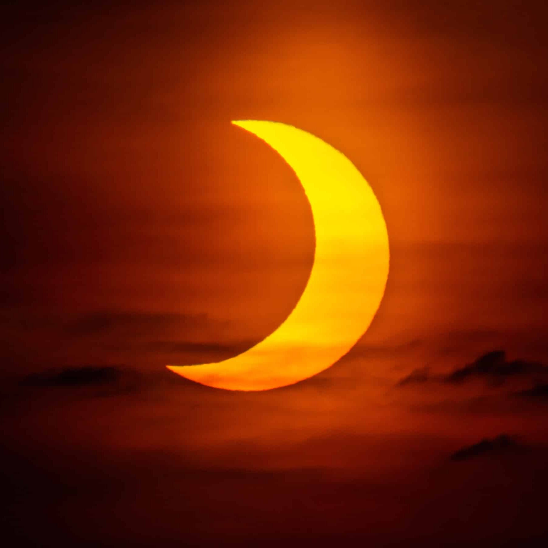 What is a partial solar eclipse?A partial solar eclipse usually occurs twice a year but can sometimes be seen up to five times in a year. A partial eclipse happens whenever the moon’s orbit and the sun’s orbit cross. Typically, the moon covers only part of the sun.