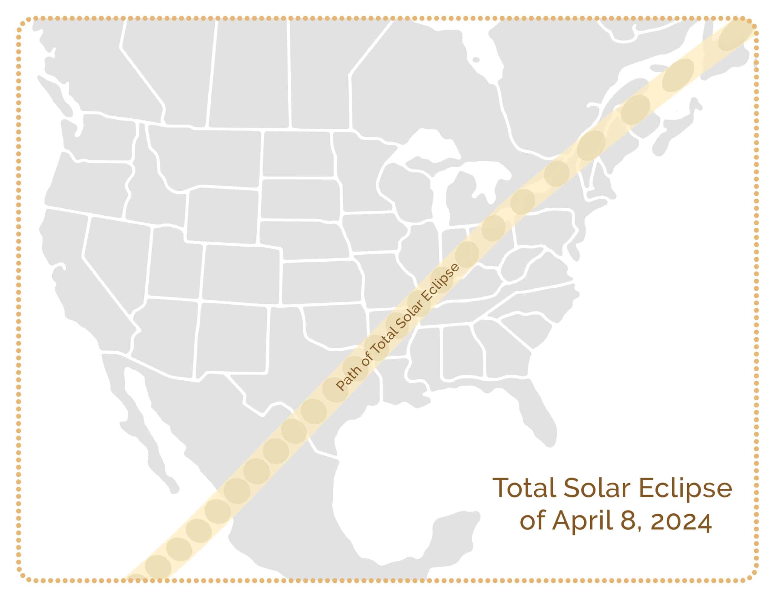 On April 8, 2024, North America experienced a total solar eclipse. Its 115-mile-wide path stretched northeast from Mexico, through fifteen US states and six Canadian provinces. The sun was eclipsed for up to 4 minutes and 27 seconds, depending on the observer’s location. Although the total-blackout path across the continent was relatively narrow, all of Mexico and all of Central America as well as most of the US and Canada witnessed a partial eclipse. Most of Alaska was the only area out of range. Click here to see a time-lapse video and complete map of the total-blackout path.