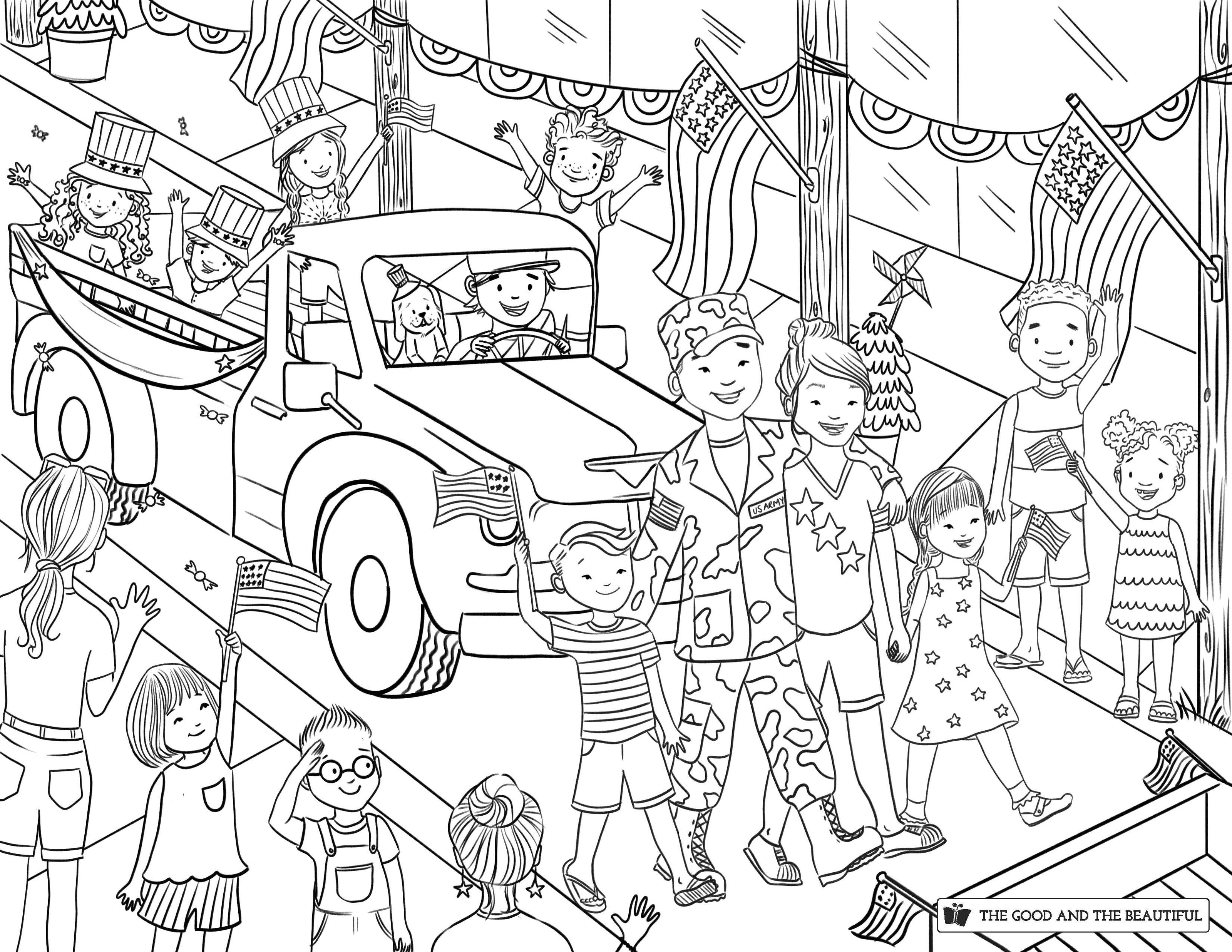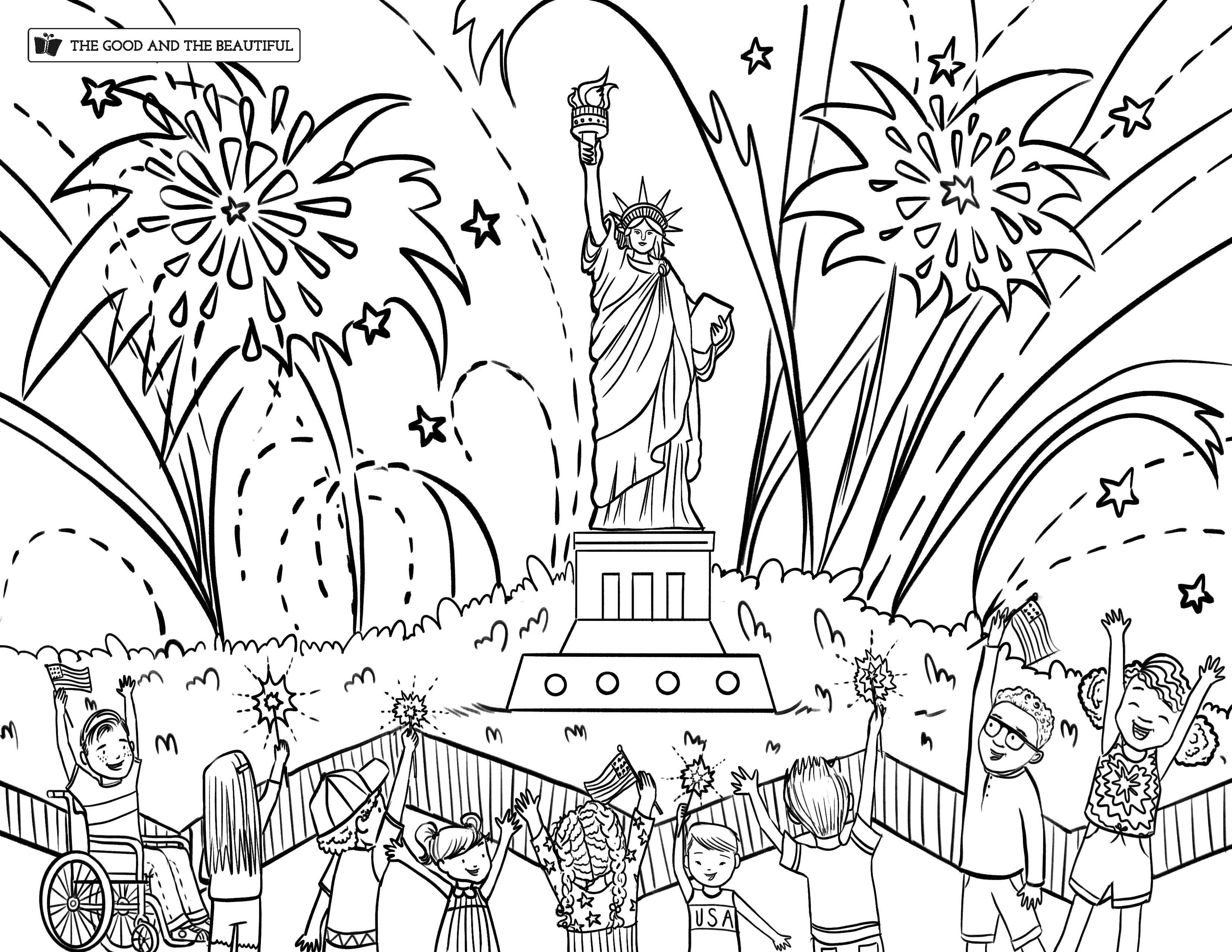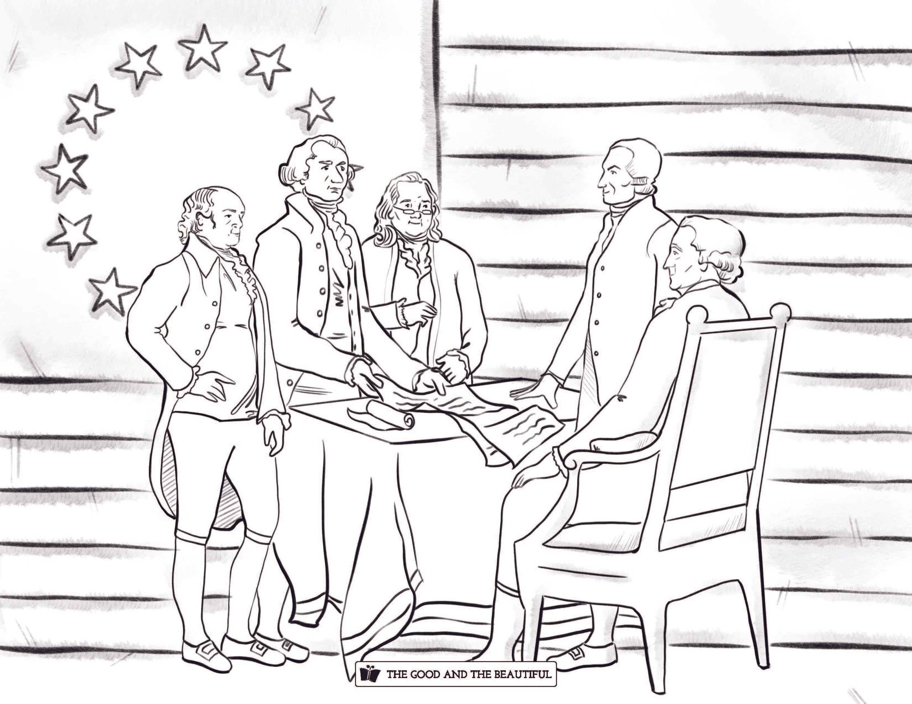 Enjoy these beautiful illustrations made into patriotic 4th of July coloring pages, available only from The Good and the Beautiful. Keep reading to learn more about this US national holiday with some Declaration of Independence and 4th of July fun facts!