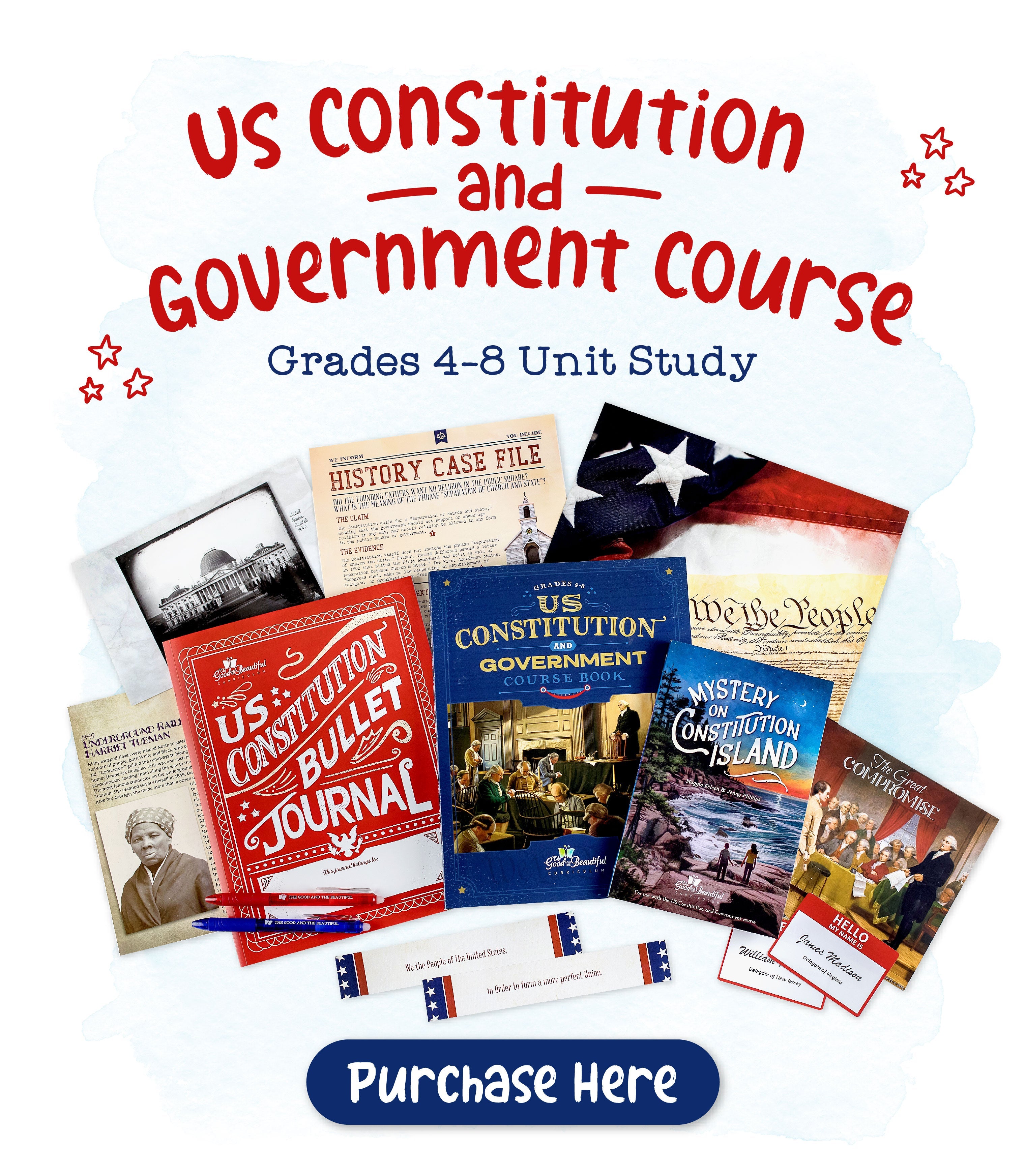 Our unique US Constitution and Government Course immerses families in the principles of freedom and history leading to the creation of the US Constitution.