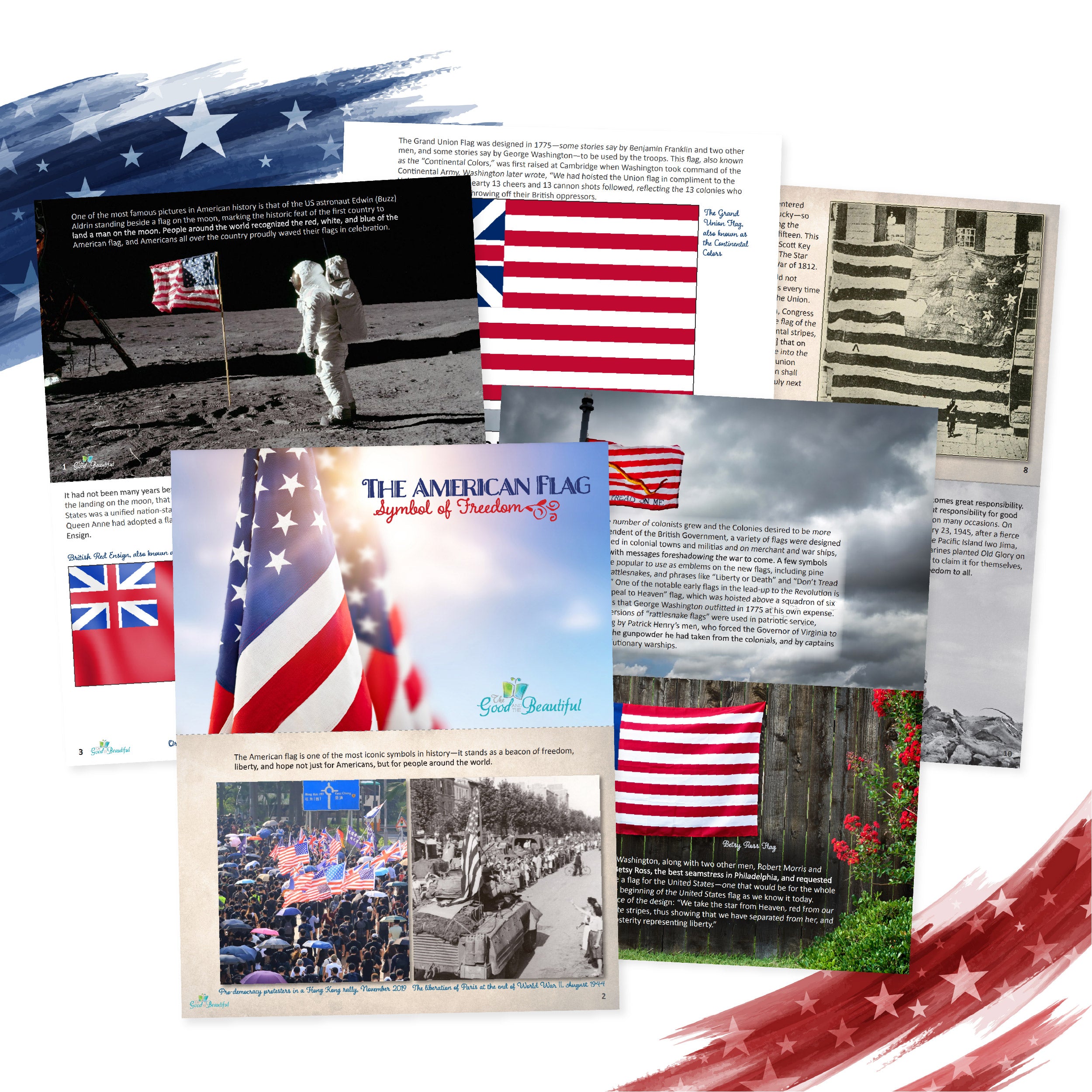 You see the flag often if you live in the United States—from battlefields to turrets to your front porch! But do you know the American flag’s history? Let’s learn about the history of the US flag. Then be sure to print the mini-book from our US Constitution and Government Course, which offers even more information.