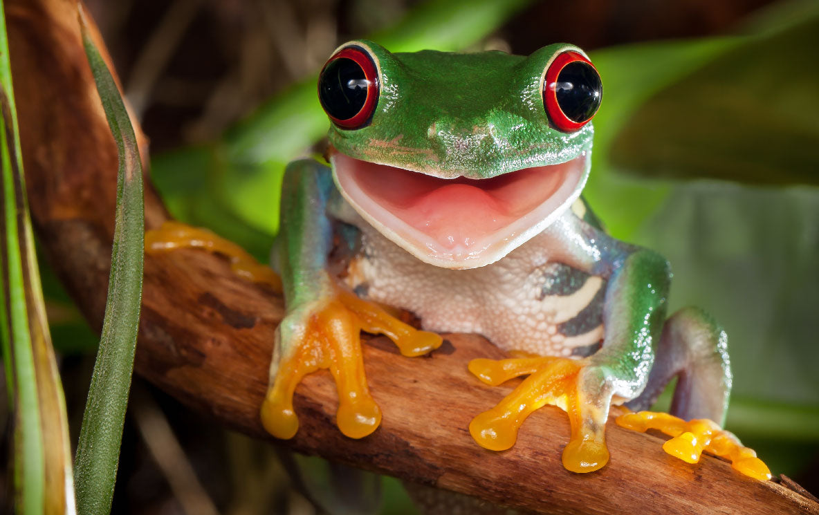 Some frogs are born with the most brilliant colors—and for good reason! The bright colors act as camouflage and a warning to predators not to eat them, as colorful frogs most likely are poisonous.