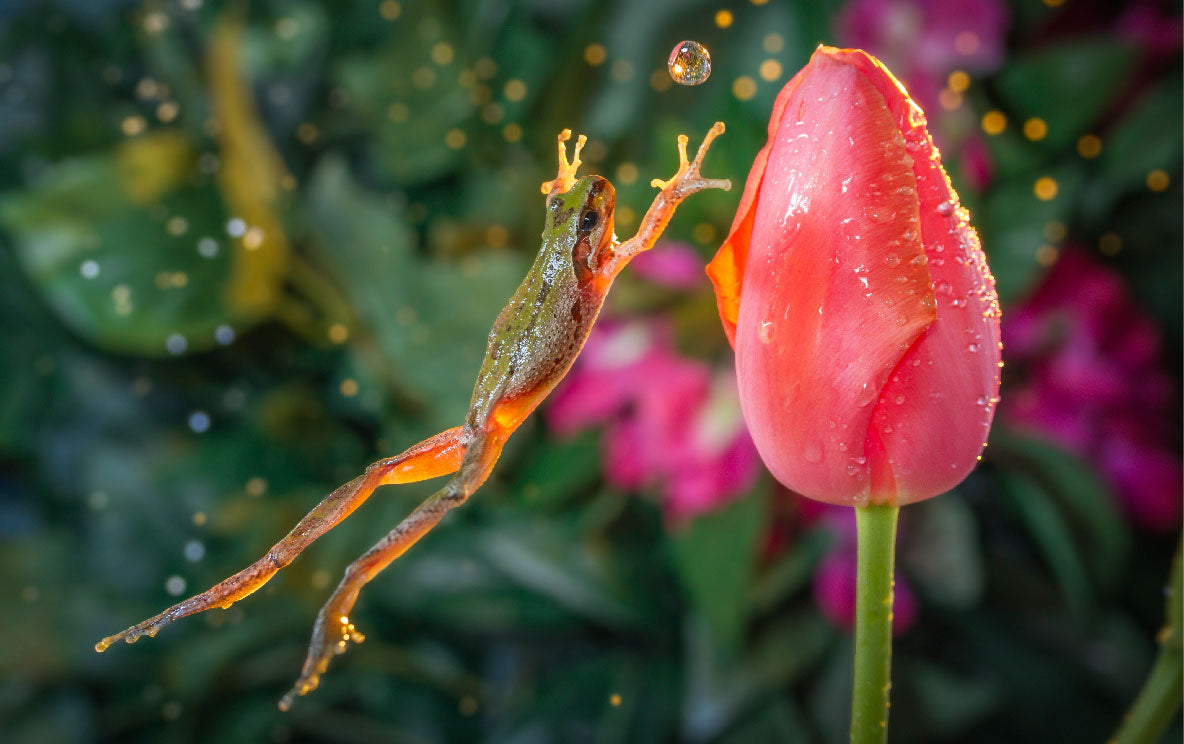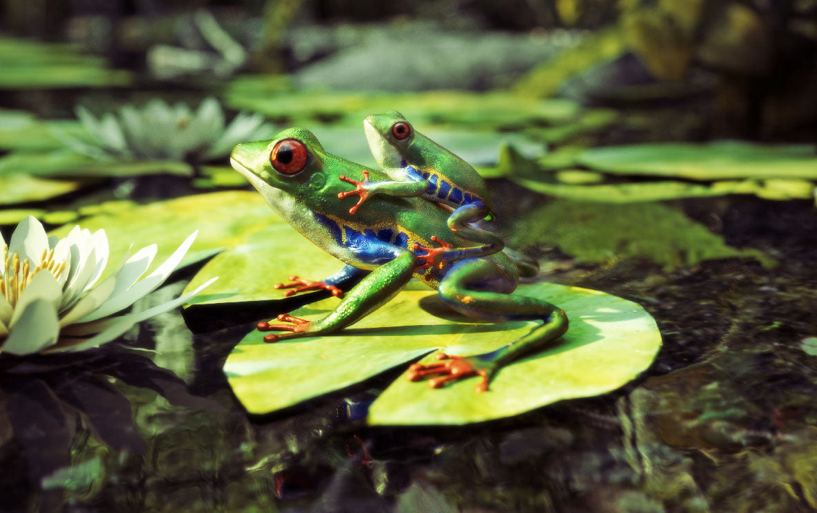 Some frogs are born with the most brilliant colors—and for good reason! The bright colors act as camouflage and a warning to predators not to eat them, as colorful frogs most likely are poisonous.