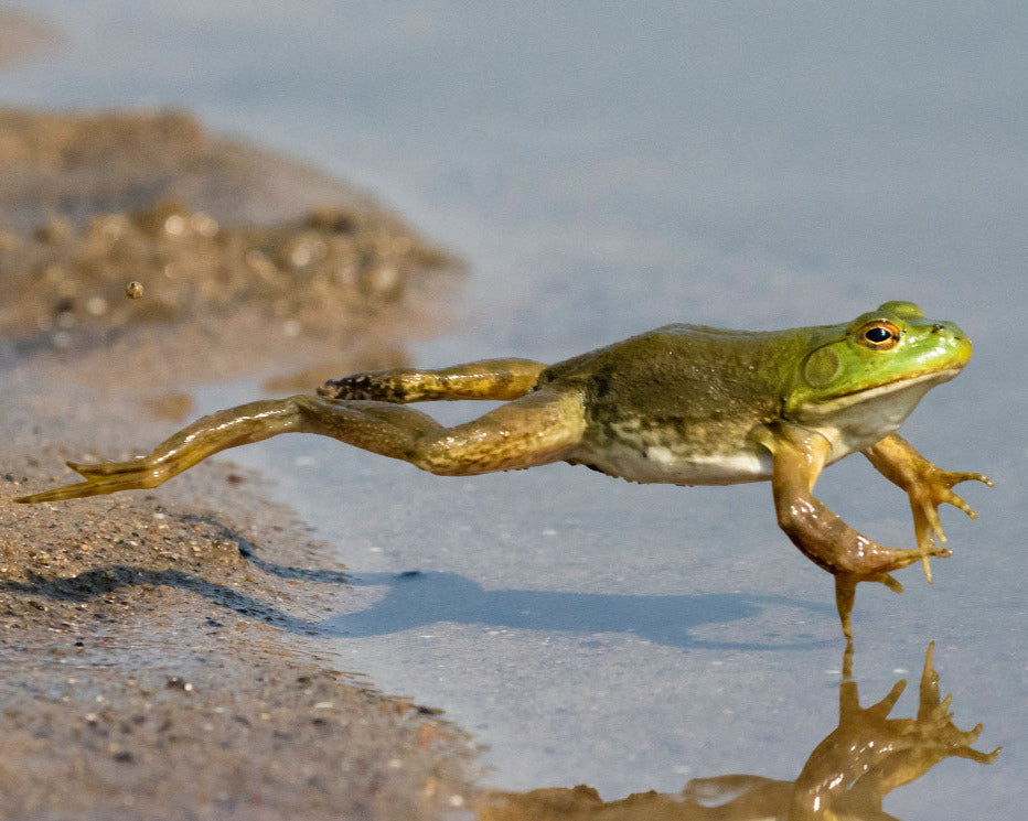 Their special legs give frogs the ability to jump, leap, hop, climb, crawl, and swim from danger, catch a meal, or spring from a lily pad.