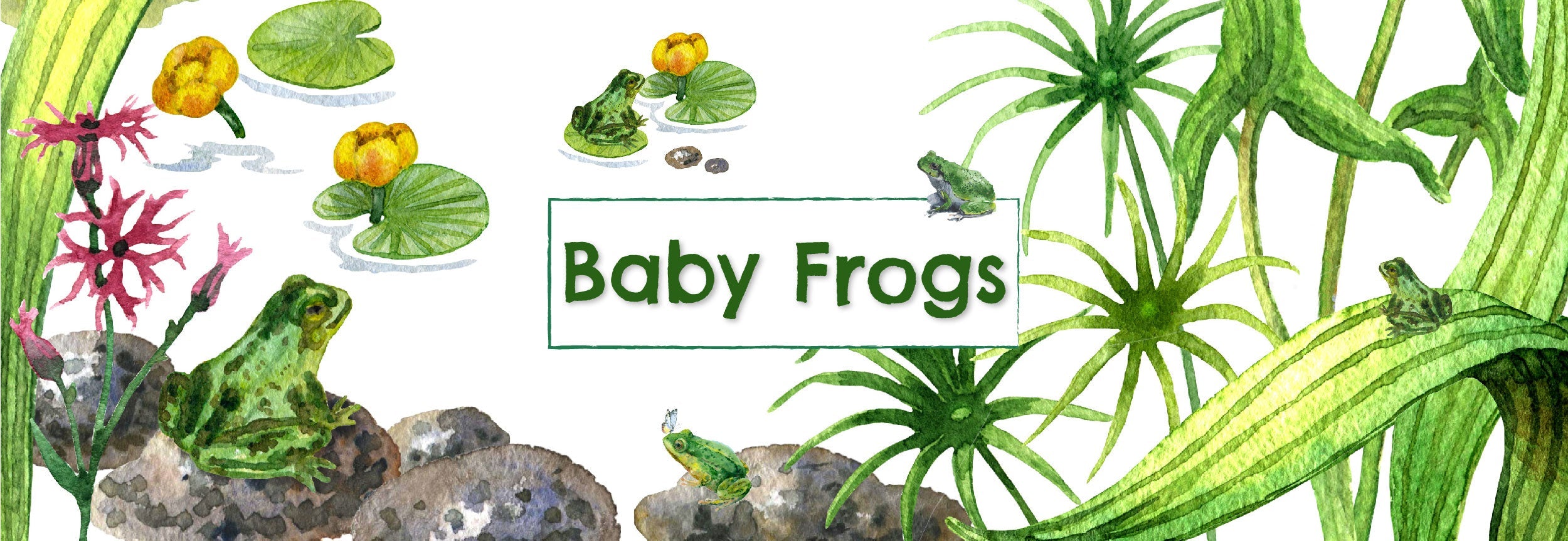 Baby frogs emerge from their eggs as tadpoles with a tail and no legs. Soon they grow two legs, then two more, and then hop away to explore their habitat.