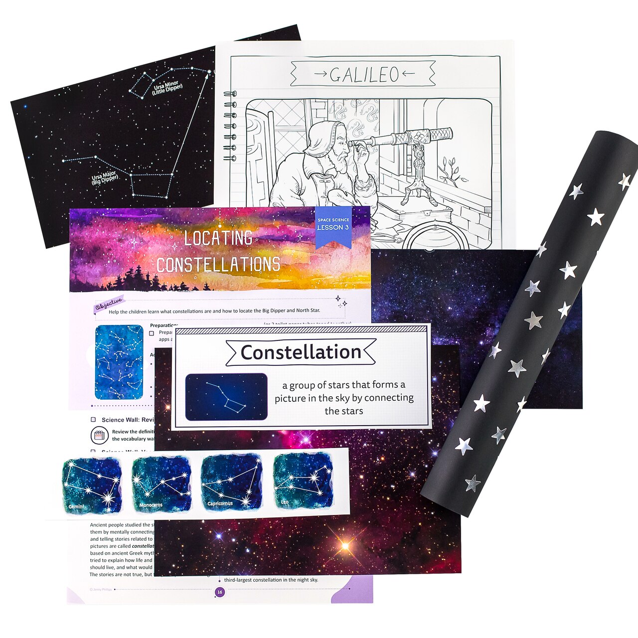 In Lesson 3 of our Space Science unit, students learn more about constellations. The interactive portion of this lesson includes two fun and easy activities. The first shows how to make your own constellations, and the other teaches students how to make a homemade telescope! Start one of them now, though, with this simple space activity from The Good and the Beautiful.