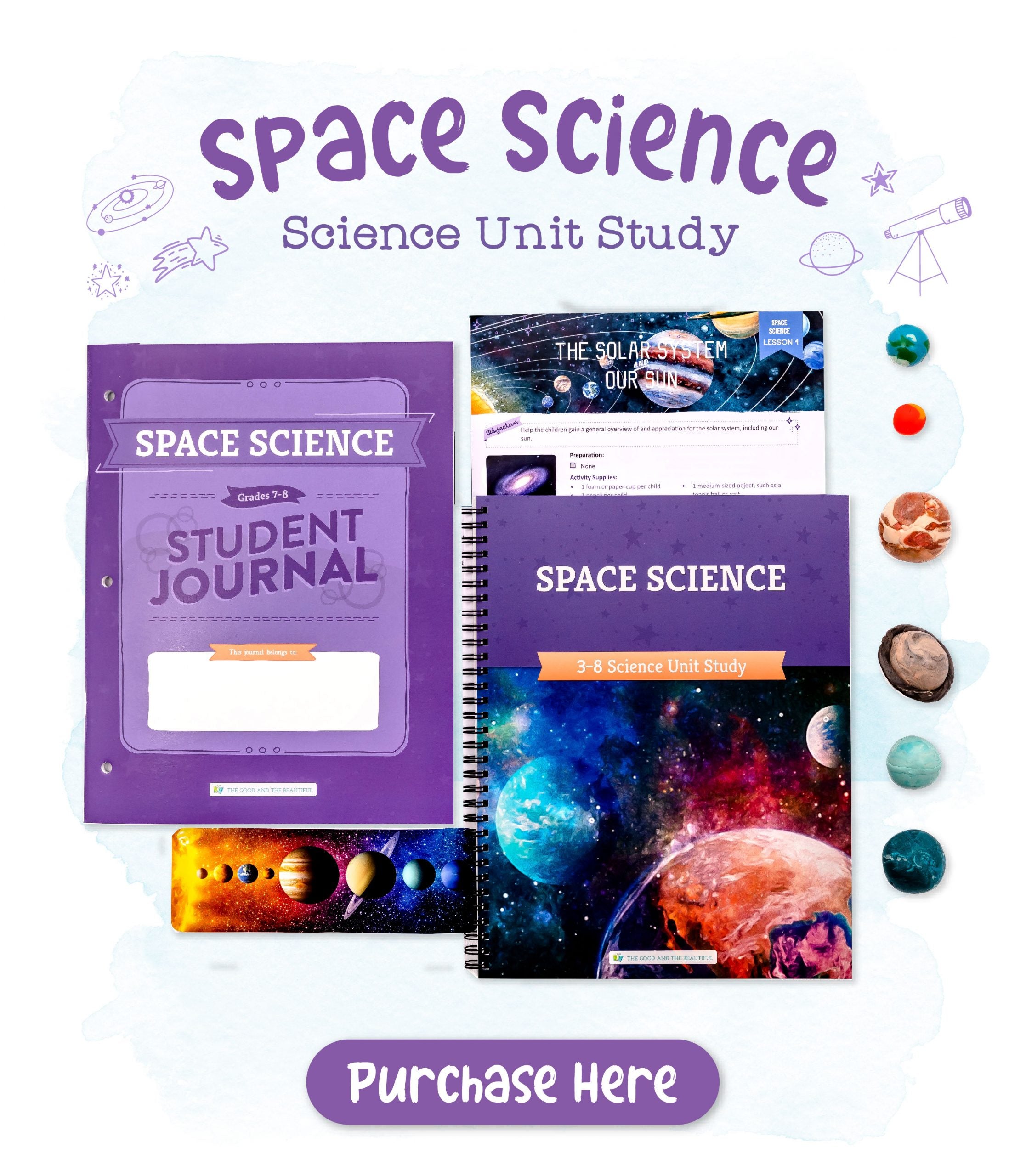 Ready for takeoff? Click here to purchase our Space Science unit. Add one course book for the family and an age-appropriate Student Journal for each student—either grades 3–6 or grades 7–8. Children younger than third grade enjoy learning right alongside their older siblings!