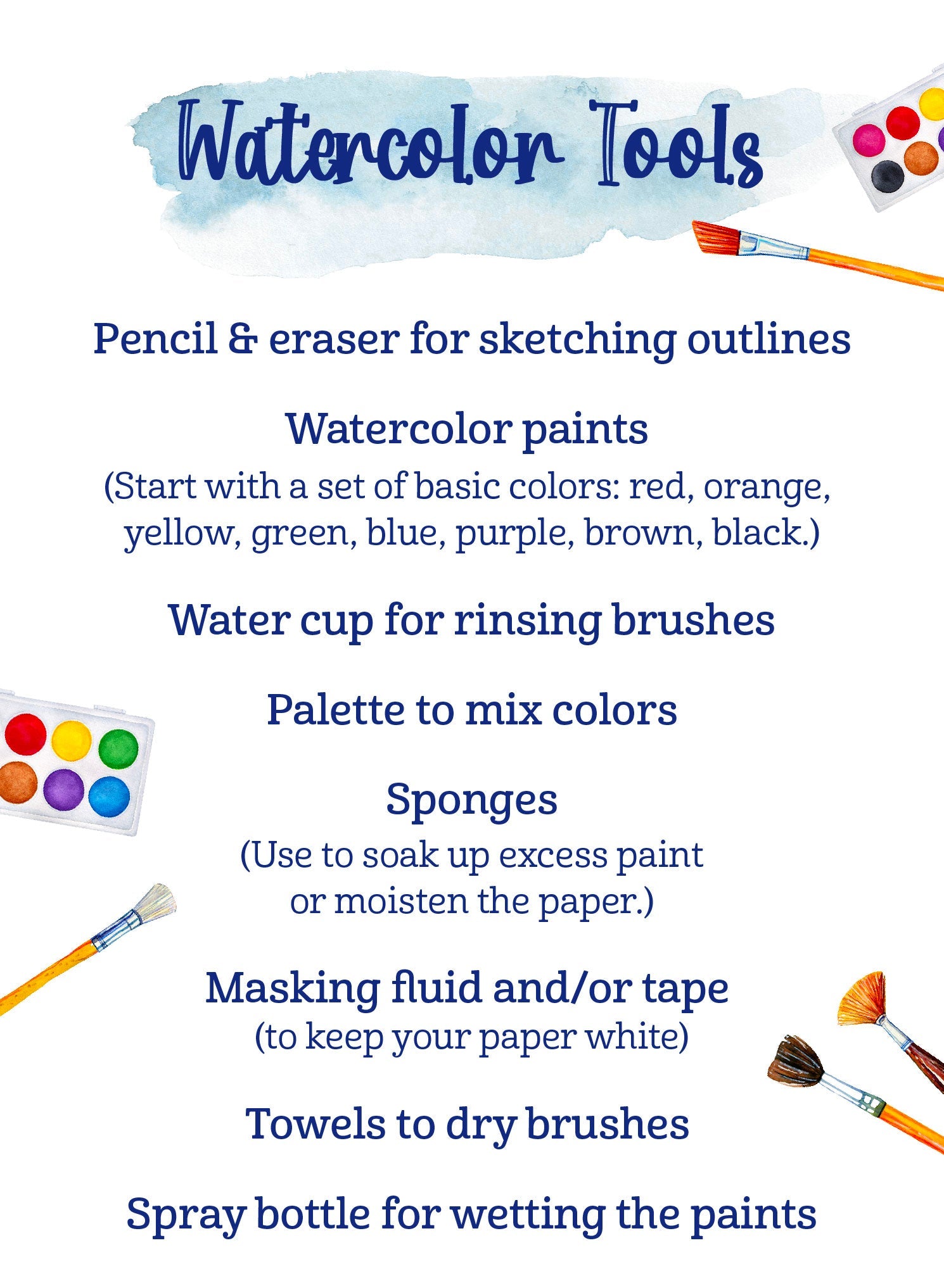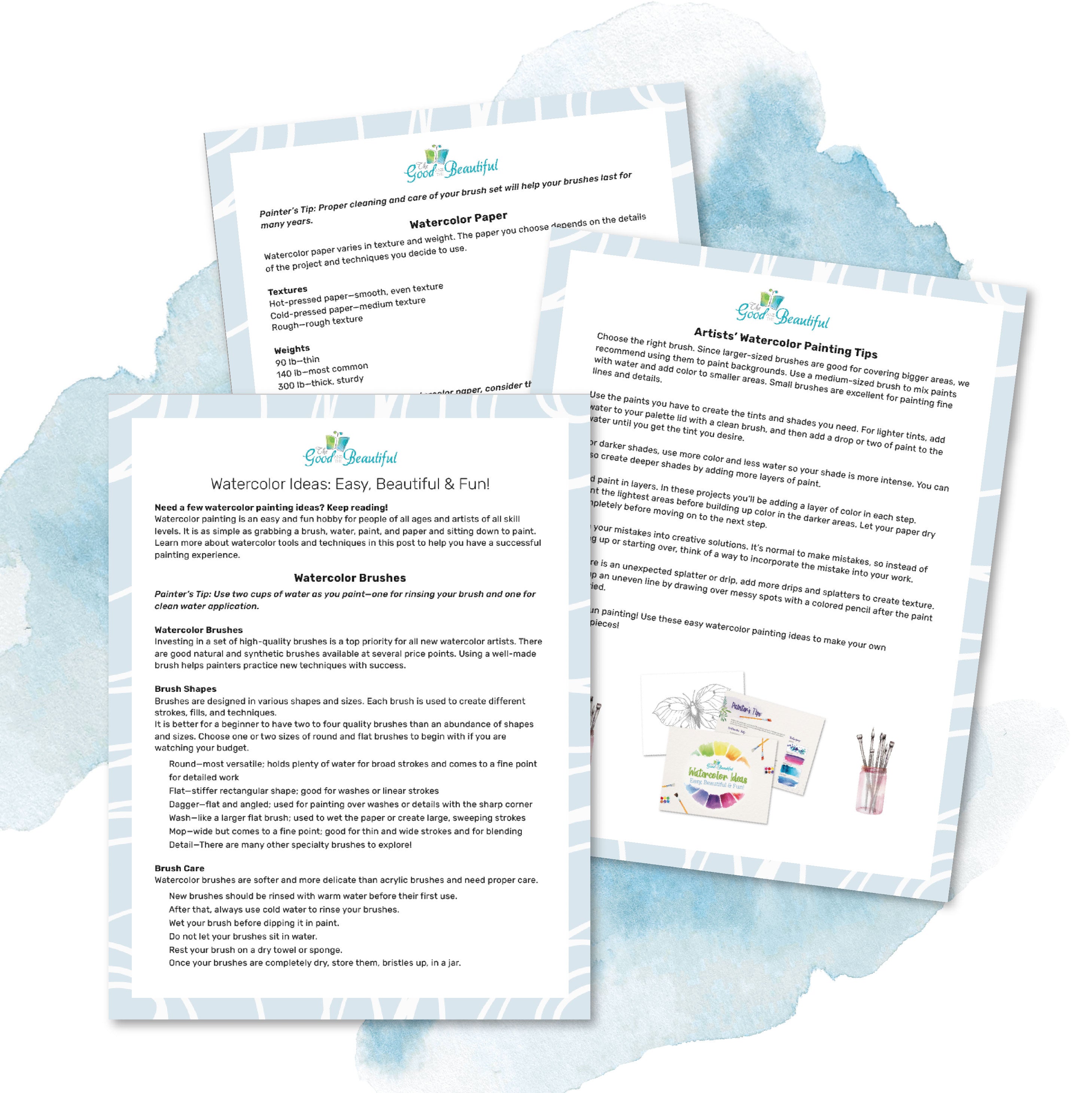 Investing in a set of high-quality brushes is a top priority for all new watercolor artists. Good natural and synthetic brushes are available at several price points. Using well-made brushes helps painters practice new techniques with success.