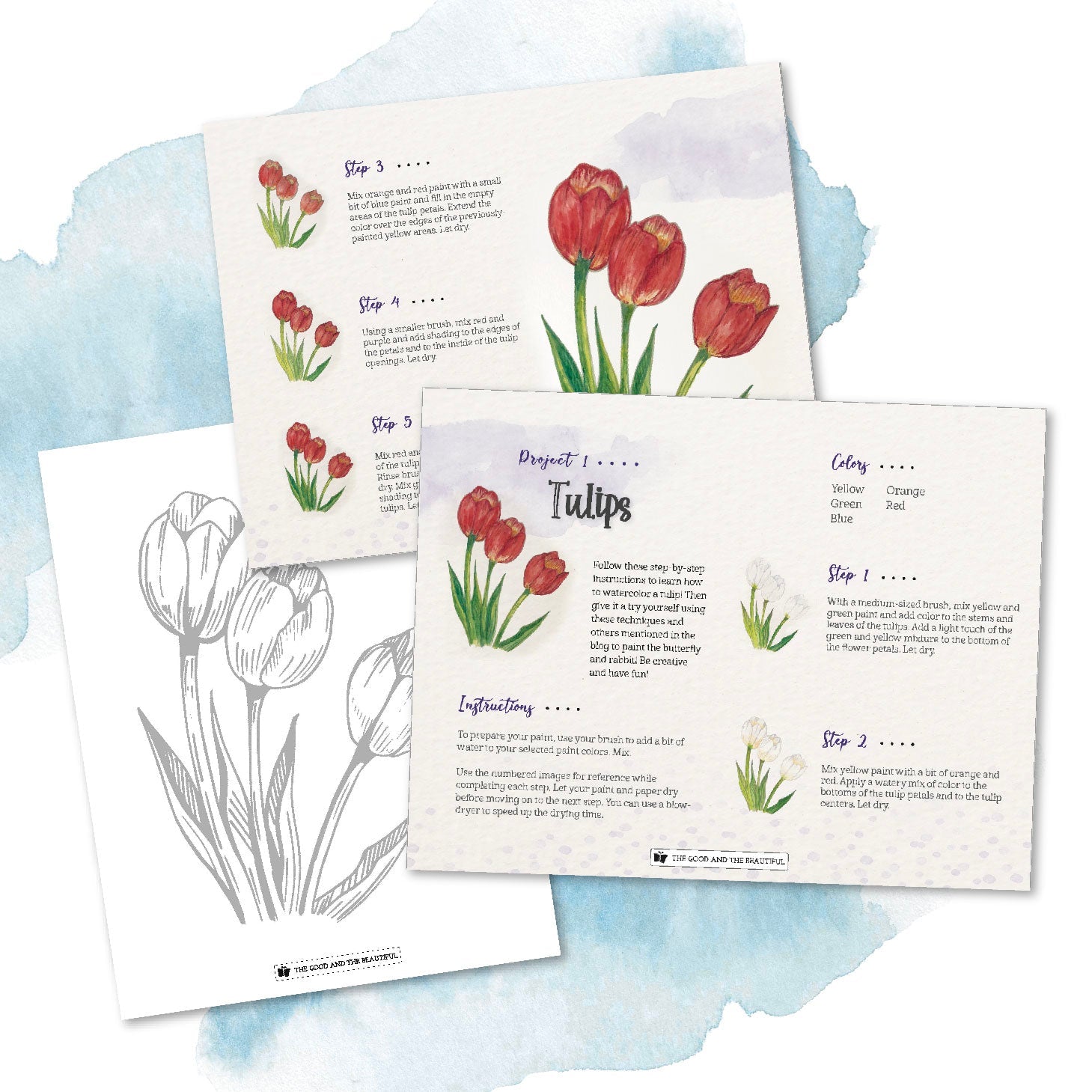 • Add paint in layers. In these projects, you’ll be adding a layer of color in each step. Paint the lightest areas before building up color in the darker areas. Let your paper dry completely before moving on to the next step.