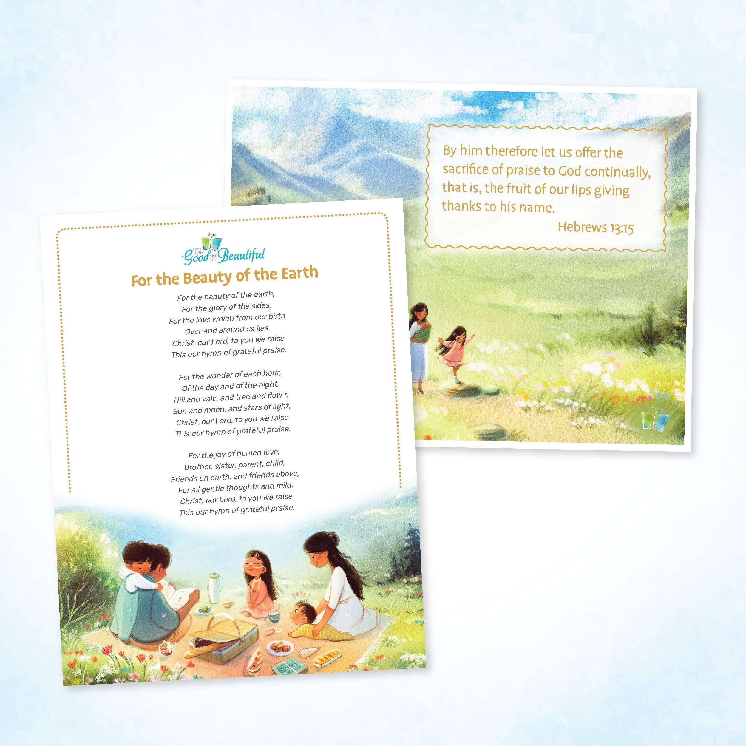 The lyrics in the hymn “For the Beauty of the Earth” are inspiring and timeless. Reflect on God’s precious gifts as you sing along with this gentle and lovely song. Then learn the history of the song and print the lyrics.