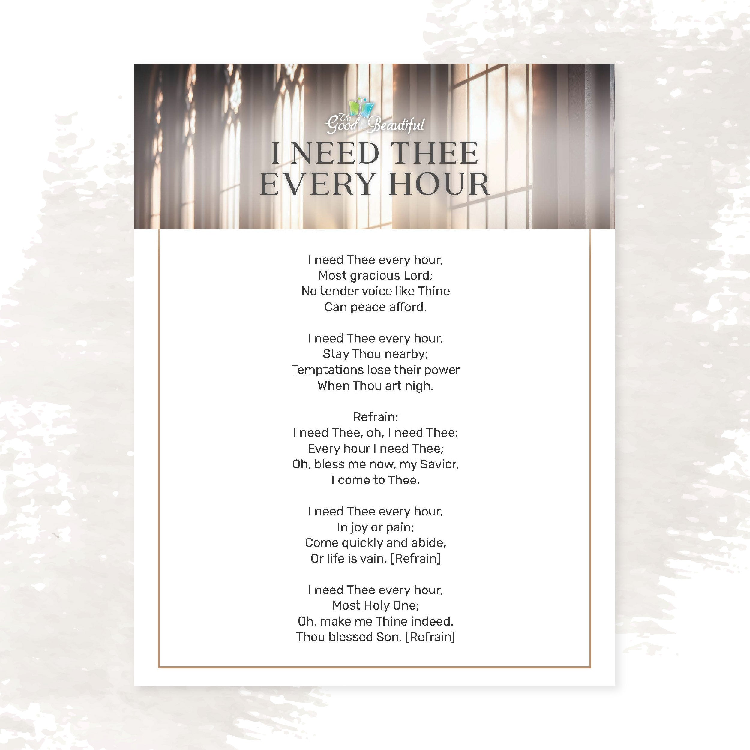 Experience the timeless beauty of “I Need Thee Every Hour” in this heartfelt performance by Life in 3D, produced by The Good and the Beautiful. This soul-stirring arrangement brings a message of peace, faith, and reliance on God, reminding us that His presence is our greatest comfort. The tenderness of the Lord’s presence is felt in this hymn’s comforting lyrics by Annie Sherwood Hawks.