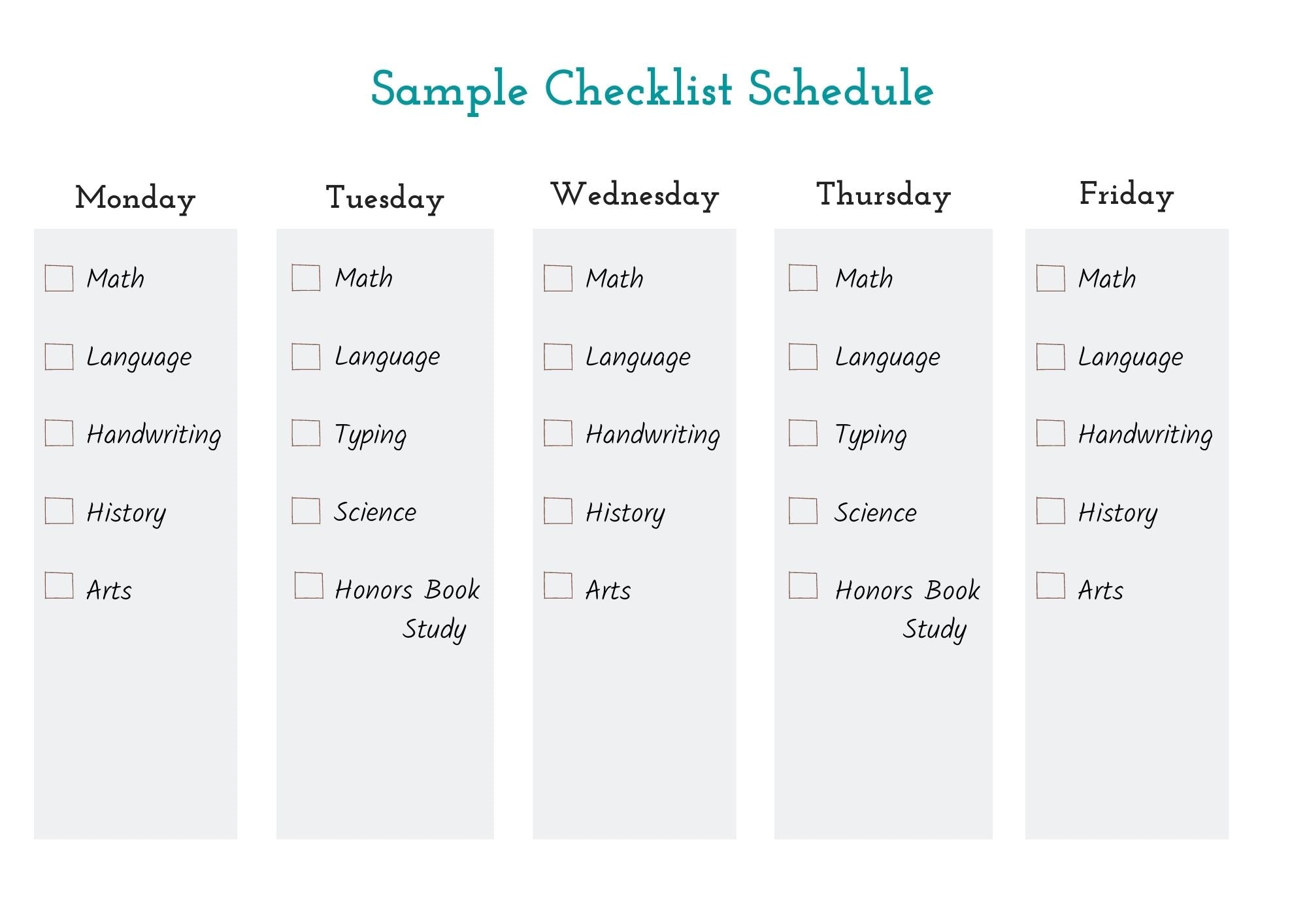 Our last schedule is a simple daily or weekly checklist to keep both students and parents focused on the tasks to be completed, but not at any specific time.