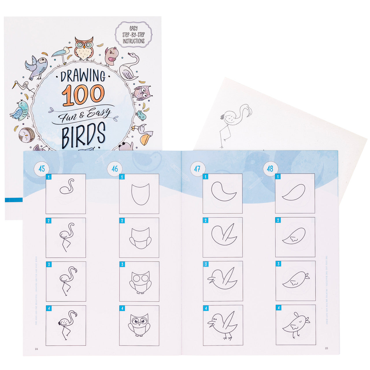 Draw a high-stepping flamingo, a whimsically patterned owl, a graceful swan, and more in Drawing 100 Fun & Easy Birds!