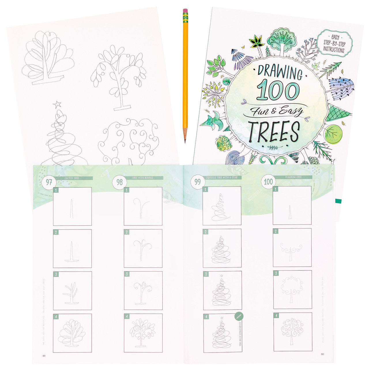 In Drawing 100 Fun & Easy Trees, draw an evergreen tree decorated with tinsel, a whimsical palm tree, a weeping willow heart tree, and more!