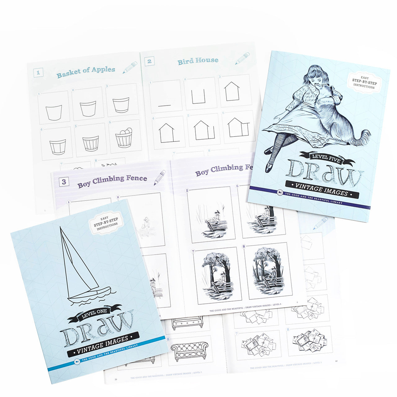 In the Draw Vintage Images series, artists, young and old, learn through simple steps to draw vintage images like those found in classic storybooks. Engaging exercises increase in complexity as children progress through each level and gain the fundamentals of art. The Draw Vintage Images series is carefully designed to emphasize beauty, nature, creativity, and enjoyment while learning and practicing art concepts. The Draw Vintage Images series includes 5 books that increase in detail and difficulty: