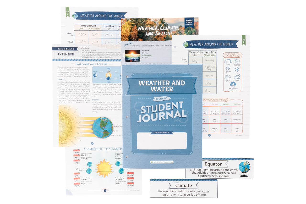 From thrilling storms and calming rains to heat waves and cold snaps, explore all the ways God keeps things growing and changing on our Earth in this engaging science unit. Create a Tornado in a Bottle, solve a Misty Mystery, locate clouds with a Cloud Viewer, and conduct many other exciting weather-related experiments throughout this new 14-lesson unit! Immerse your children in hands-on activities, fun experiments, captivating videos, and beautiful illustrations and images as they gain an appreciation for the weather and water in our world.