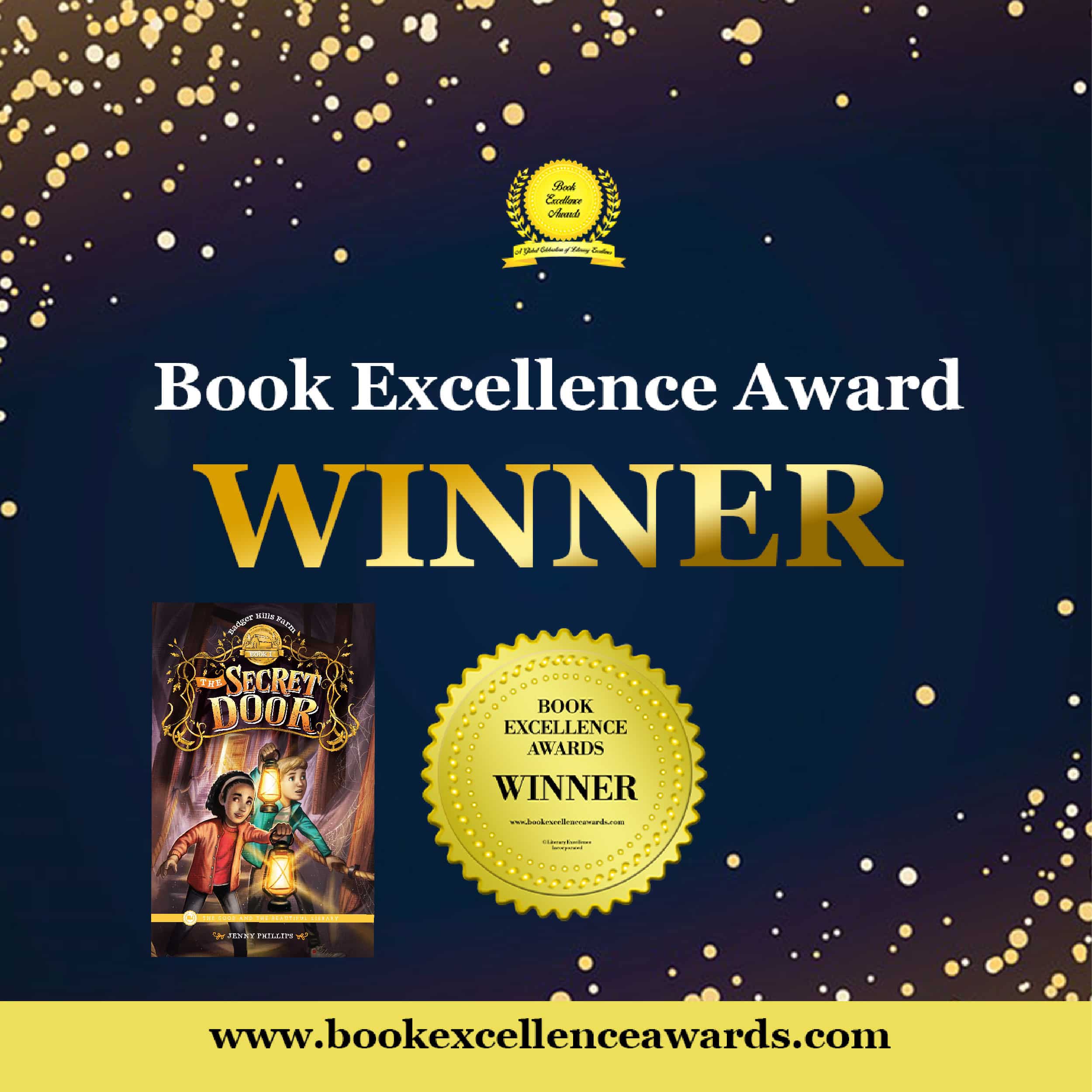 Out of thousands of entries, The Secret Door, Book 1 of the Badger Hills Farm series, was selected as a 2024 Book Excellence Awards Winner for its high-quality writing, design, and overall market appeal in children’s fiction.