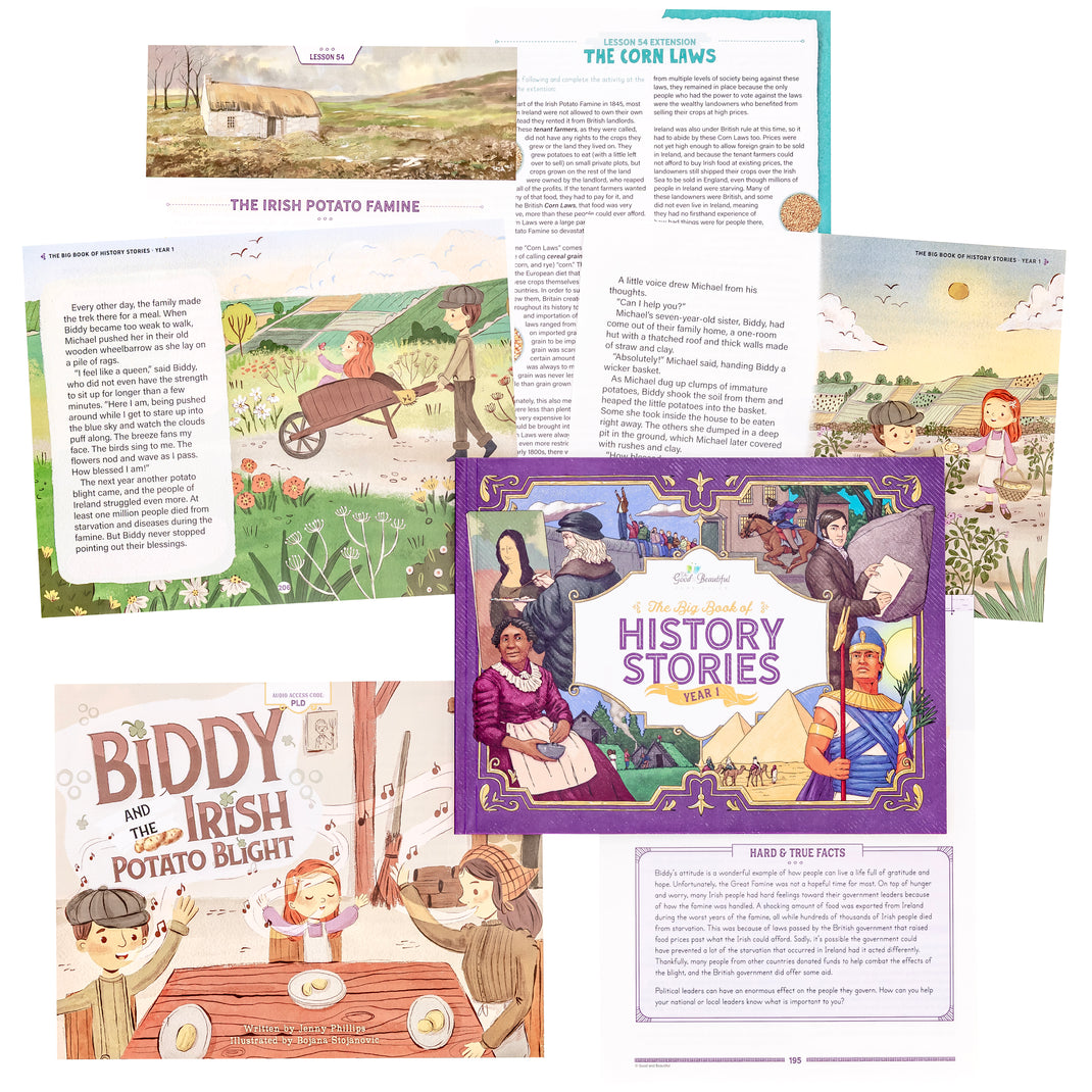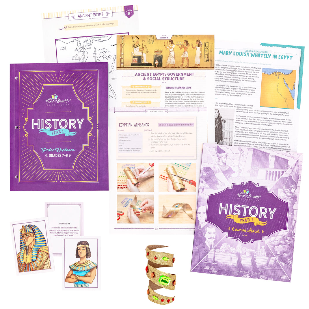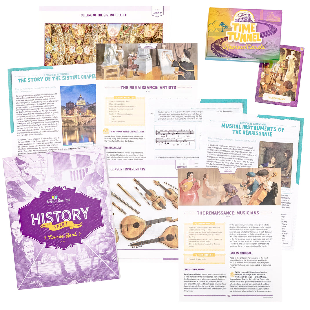 The Good and the Beautiful Year 1 History Course is designed to foster a true love of learning history through engaging lessons combined with beautiful and effective additional resources.