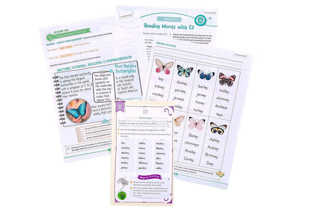 The 120 engaging parent-led lessons in the Level 2 Course Book are open-and-go and were carefully designed to reduce teaching time, yet be academically robust. The course covers over 80 foundational principles, such as phonics, spelling rules, spelling patterns, homophones, reading comprehension, alphabetical order, art appreciation, and so much more. All of this is taught in gentle, natural, and enjoyable ways for the child.