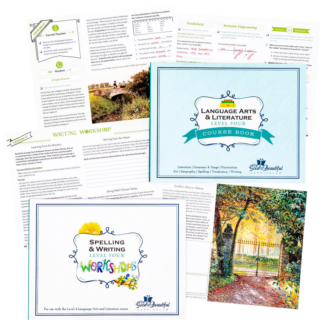 Level 4 Language Arts effectively builds a powerful foundation in language arts and opens children’s hearts and minds to high character and beautiful literature. Two Readers are packed with inspiring biographies and beautiful literature. Level 4 Spelling & Writing Workshops helps children’s writing skills blossom and dramatically improve spelling skills.