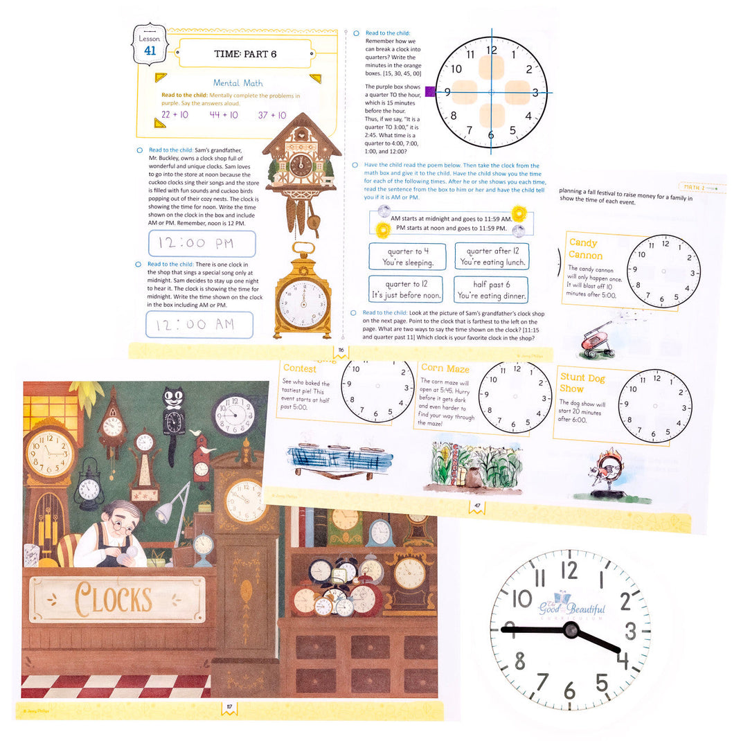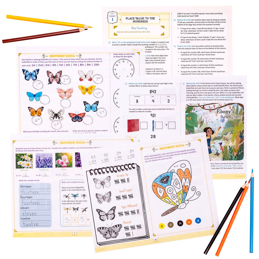 This beautiful and academically strong course is filled with connected learning and a simple daily lesson format including enjoyable activities and games. Advanced addition and subtraction, multiplication, beginning geometry, graphing, time, measurement, and so much more are all taught in this open-and-go course. The Math 2 Course Book serves as both the teacher’s guide and the student book and guides parents and students through each engaging lesson.
