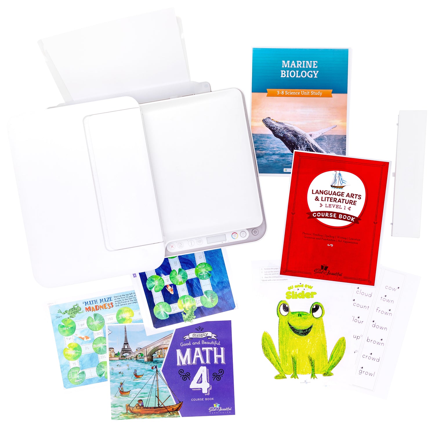 Many families find that purchasing pre-printed materials saves them money, even when adding in international shipping costs, so be sure to factor in all printing and binding costs before printing from home or sending to a printing company. Physical items directly from The Good and the Beautiful are often less expensive and are higher quality.