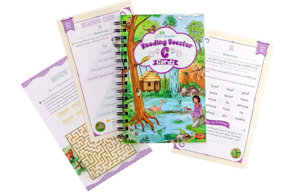 Lessons prompt you when to use the Reading Booster C Cards and Books, the Homeschool App, and the Letter Tiles app.