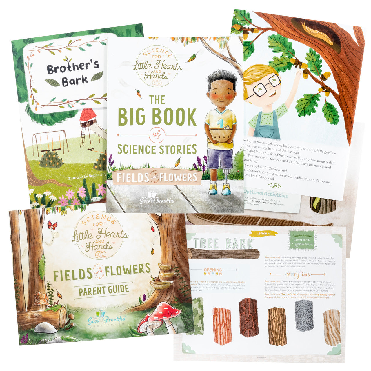 Included in the Science for Little Hearts and Hands: Fields and Flowers Course Set are the full-color Fields and Flowers Parent Guide and The Big Book of Science Stories.