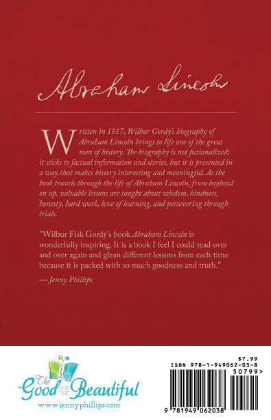 Written in 1917, Wilbur Gordy's biography of Abraham Lincoln brings to life one of the great men of history. The biography is not fictionalized; it sticks to factual information and stories, but it is presented in a way that makes history interesting and meaningful. As the book travels through the life of Abraham Lincoln, from boyhood on up, valuable lessons are taught about wisdom, kindness, honesty, hard work, love of learning, and persevering through trials.