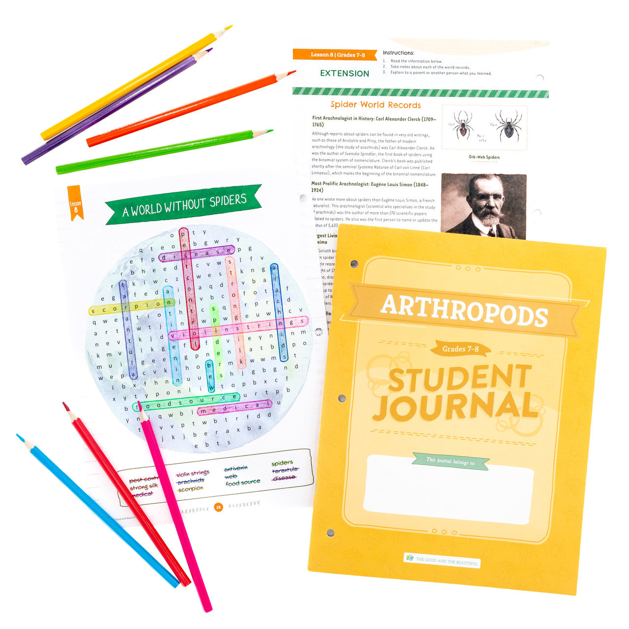 Each student grades 7–8 needs their own copy of the Arthropods Student Journal which includes interactive activities, games, and worksheets the child will complete during the lessons. The parent-led lessons in the Course Book will direct the student regarding when to complete the Student Journal activities. The grades 7–8 journal also includes a student-directed Lesson Extension for each lesson. These allow your older students to dive deeper into the lesson concepts.