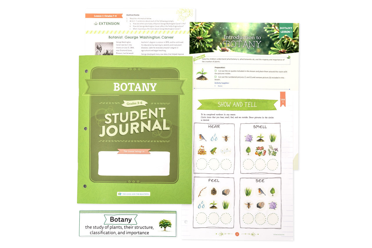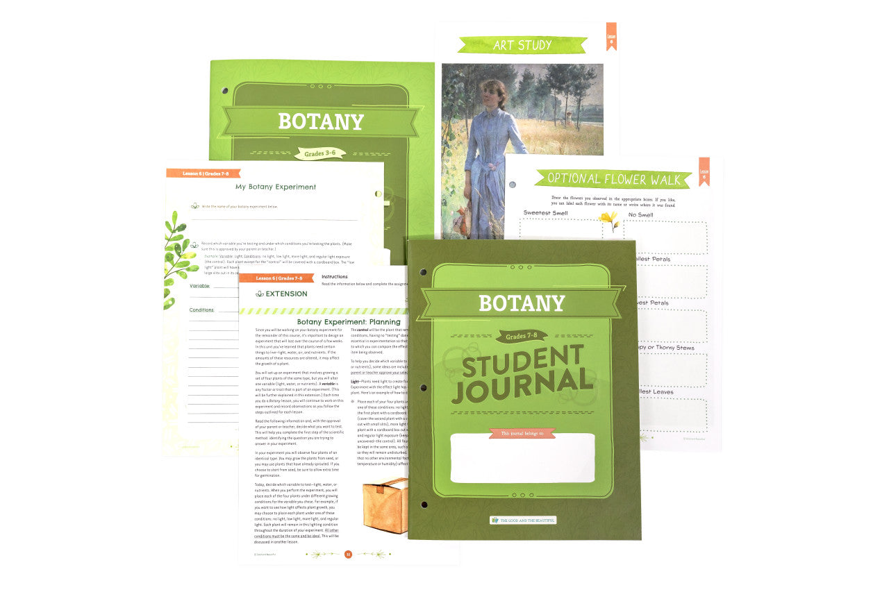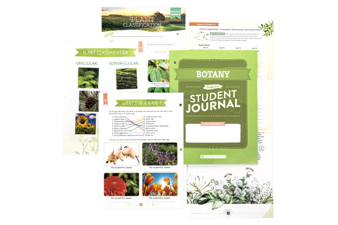 Each student grades 3–6 needs their own copy of the 48-page Botany Student Journal which includes interactive activities, games, and worksheets the child will complete during the lessons. The parent-led lessons in the Course Book will direct the student regarding when to complete the Student Journal activities.