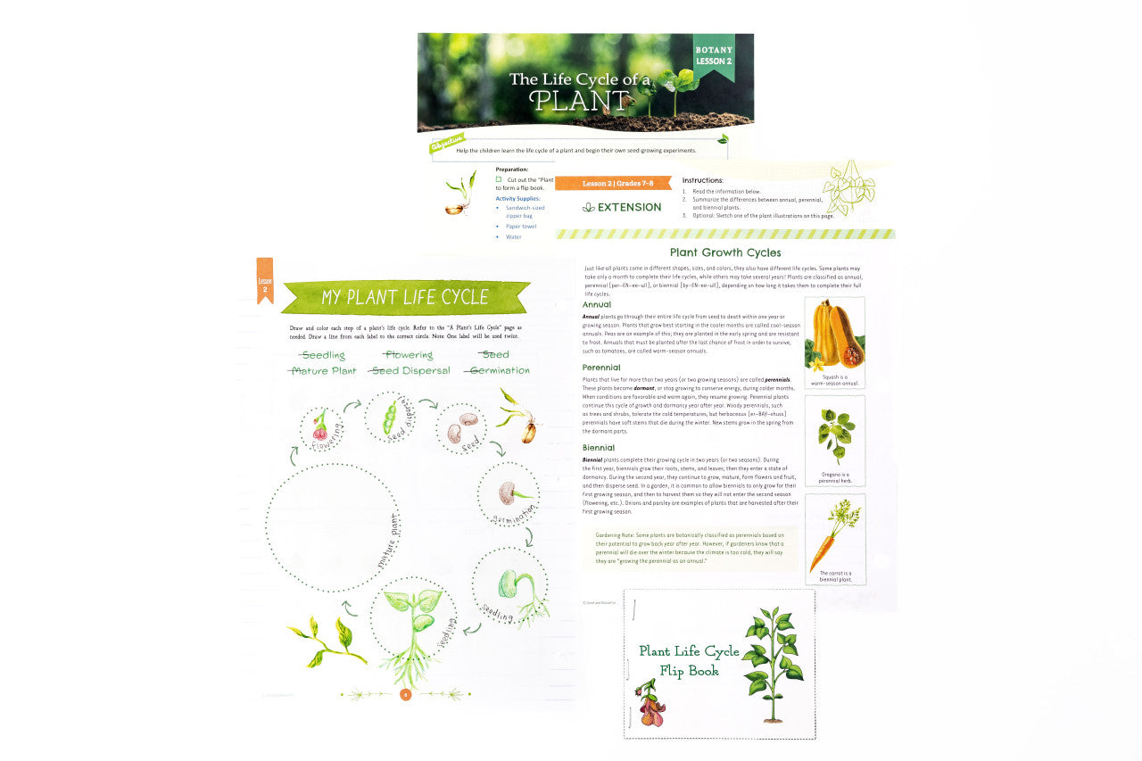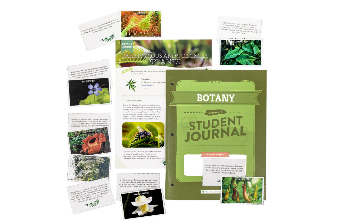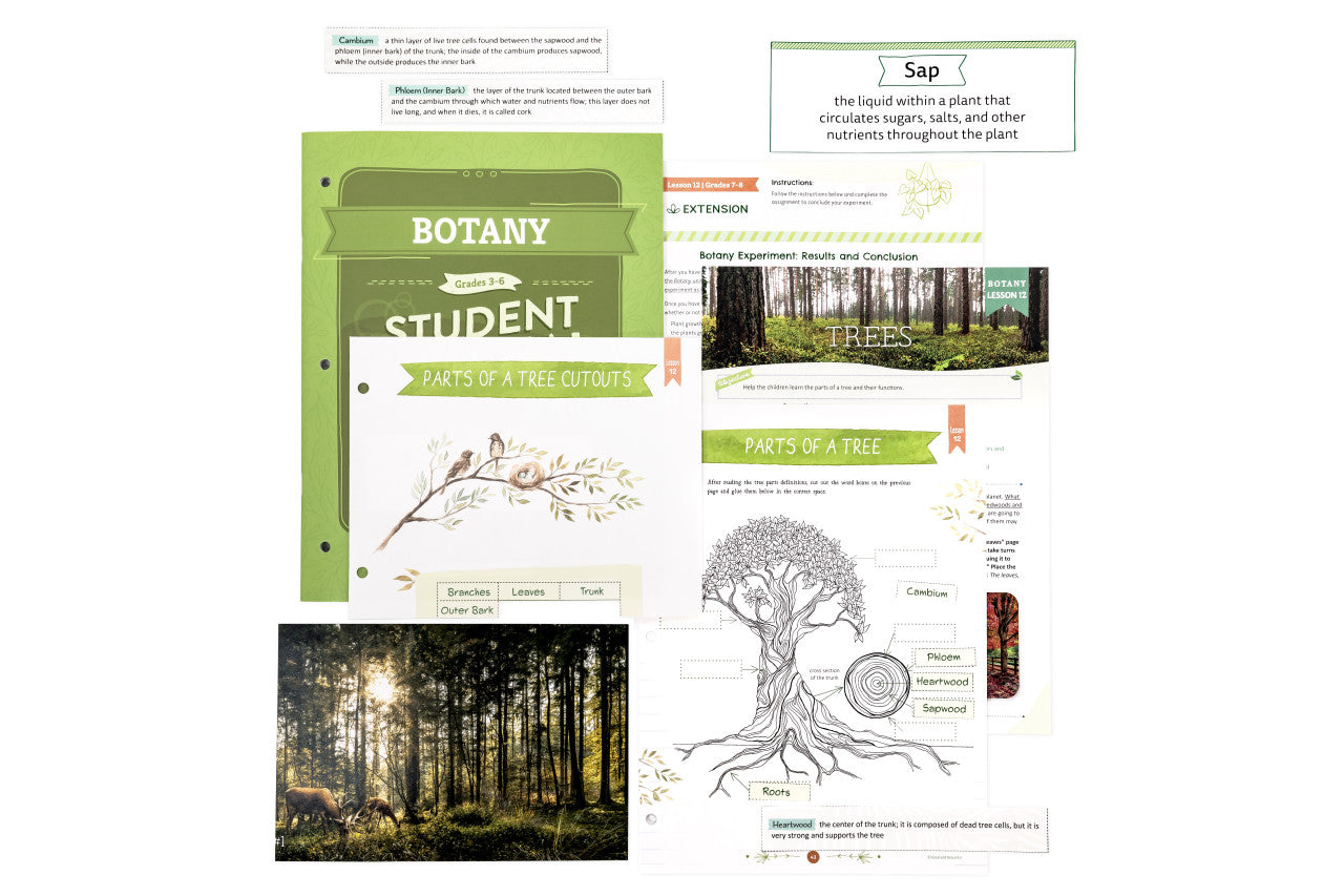 Each student grades 3–6 needs their own copy of the 48-page Botany Student Journal which includes interactive activities, games, and worksheets the child will complete during the lessons. The parent-led lessons in the Course Book will direct the student regarding when to complete the Student Journal activities.