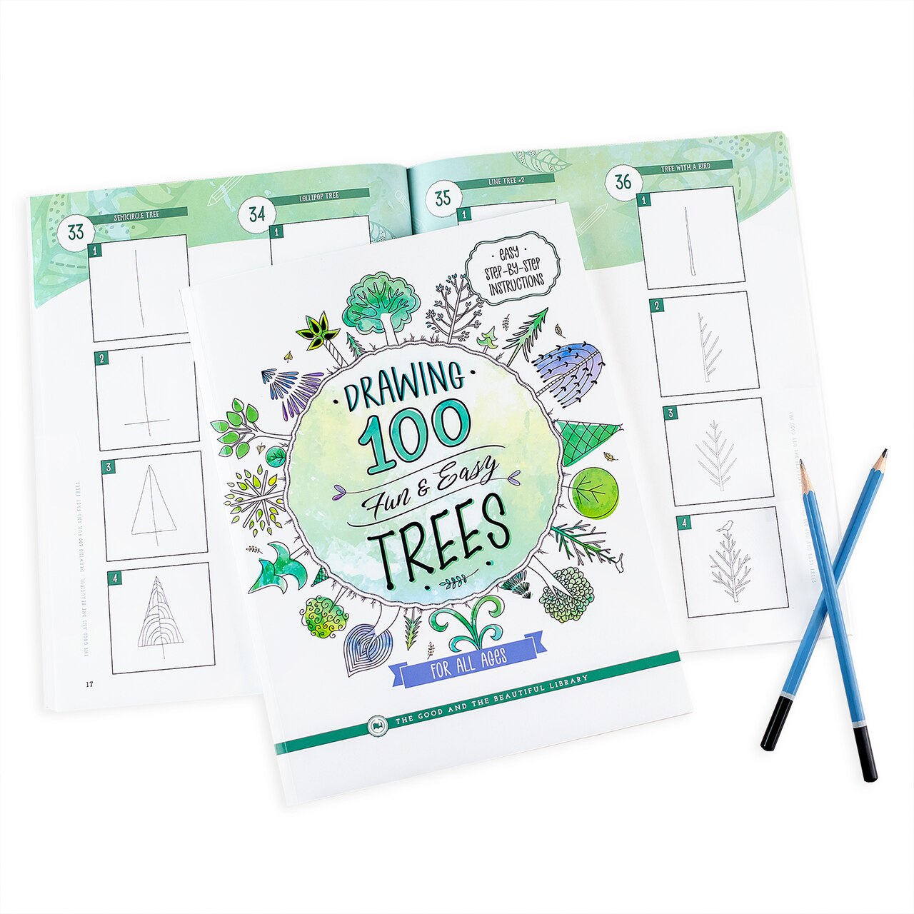 Aspiring artists, young and old, learn through simple steps to draw fun and easy objects, from birds and trees to flowers, plants, and Christmas items.