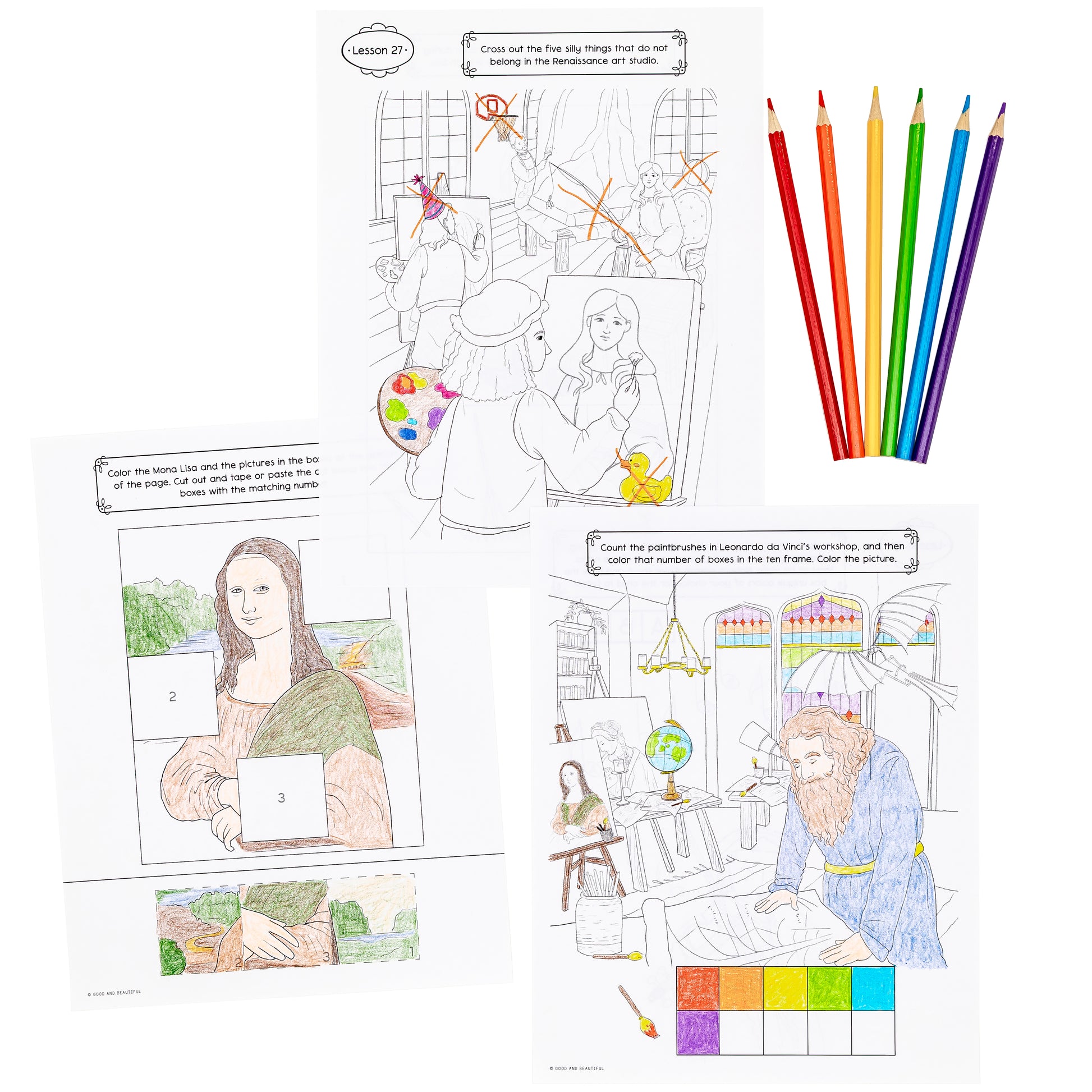 History Activity Book: Year 1 (PDF) correlates to our History Year 1 Course Set, with every two-page spread in the activity book corresponding to a lesson in the history course. However, the activity books are not integrated into the course and the history-based activity pages included can be used independently. History Activity Book: Year 1 can be purchased in physical form here.