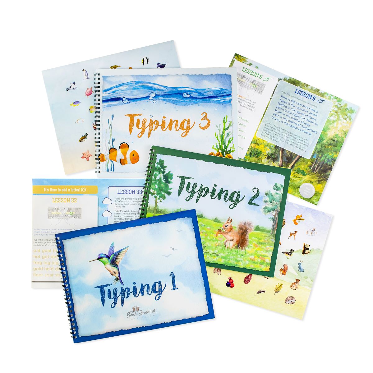 The Typing courses from The Good and the Beautiful are vibrant, full-color books that provide an engaging way for students to learn typing skills. Featuring beautiful nature-themed pages not connected to video-game style learning, the three courses together lead students to proficiency in typing. Lessons are varied each day, making learning interesting.